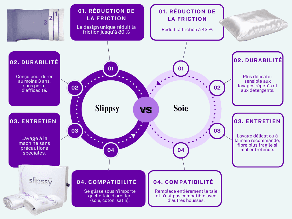 Réduit la friction jusqu’à 80% en comparaison avec une combinaison de taies d’oreiller et oreiller standard.